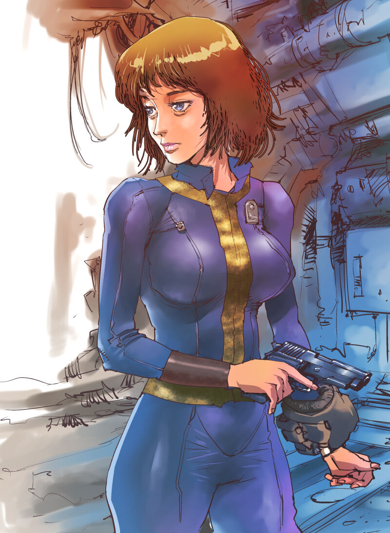 持っている拳銃はシグ・ザウエルP228でフォールアウトには出てきません。